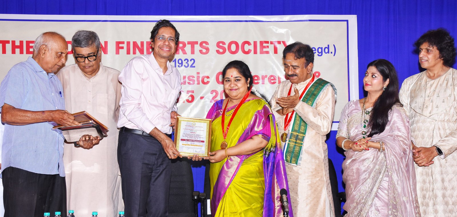 பேராசிரியர் காமகோடி, லால்குடி ஜி.ஜே.ஆர். கிருஷ்ணன் மற்றும் லால்குடி விஜயலட்சுமி ஆகியோருக்கு ‘சங்கீத கலாசிகாமணி’ பட்டத்தை வழங்கி, ரொக்கப் பரிசு வழங்கினார்.